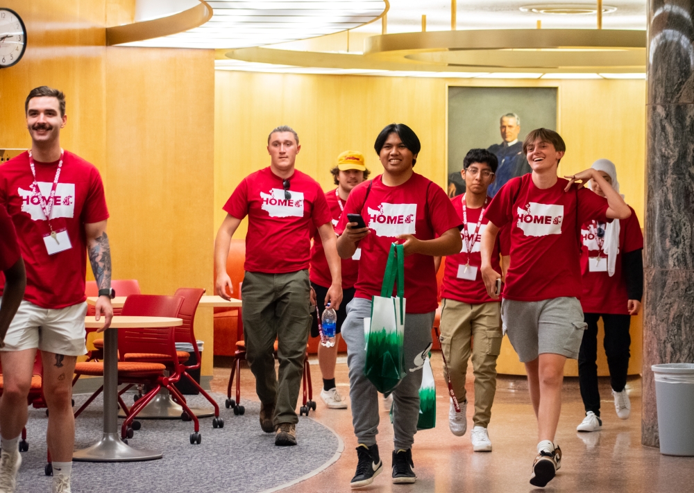 New Cougar Orientation student tour in Holland Library in July 2023. Photo by Frankie Beer.