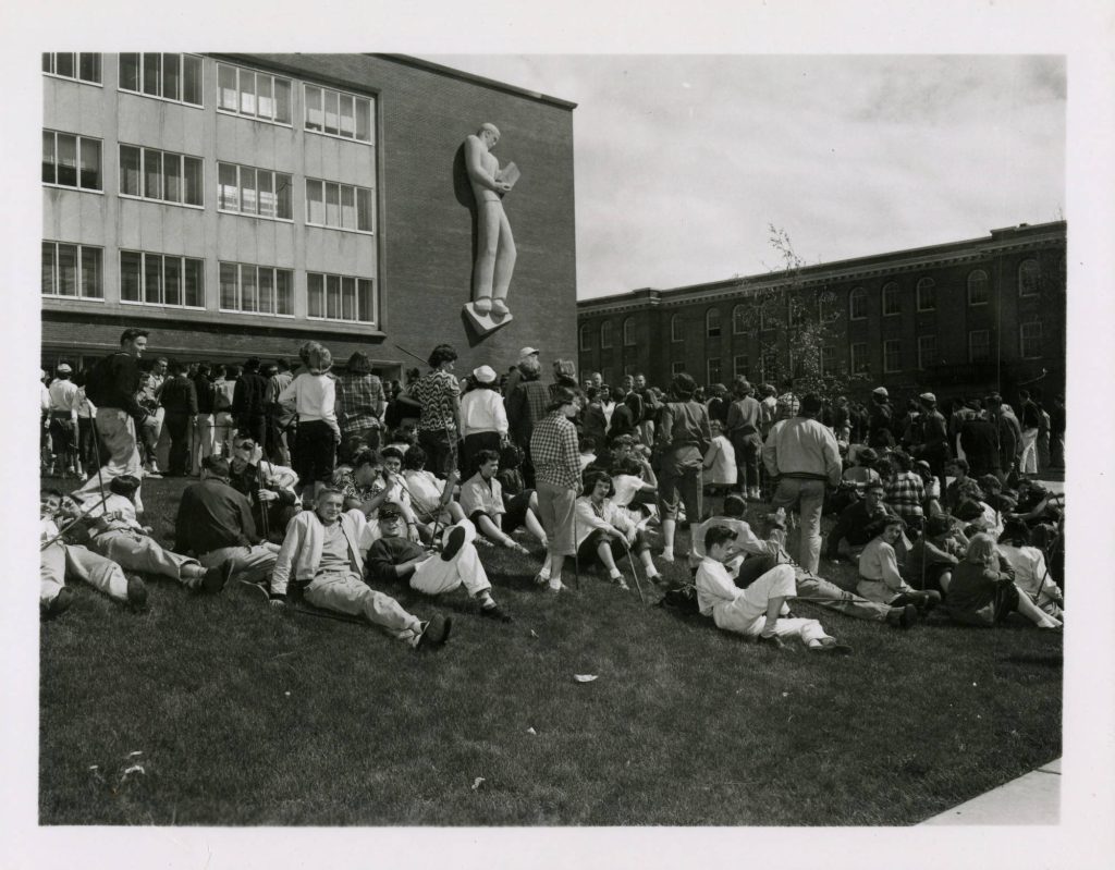 Stop Day outside of Holland Library in 1952. Photo courtesy of Manuscripts, Archives, and Special Collections.