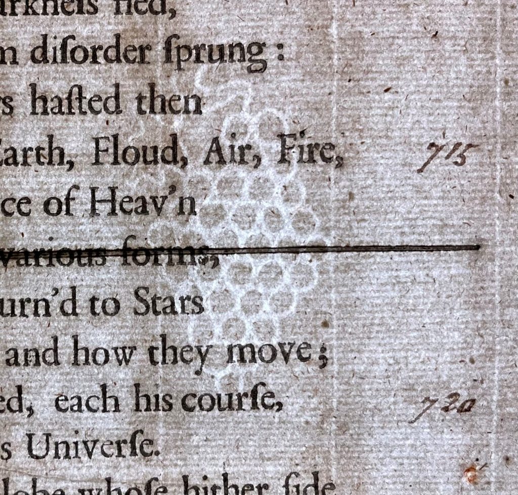 One of my favorite books in MASC is the 1688 edition of Milton’s Paradise Lost, which includes 12 stunning full-page engravings and the bold signature of book owner “Michael Dunn, his Book, 1799.” The paper’s watermarks vary between the makers’ logo and a bunch of grapes.