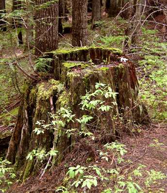 There are plenty of signs of logging decades ago, but some of the stumps are covered decoratively in moss.