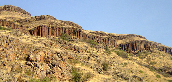 The dry, rocky terrain of the canyon may have reminded folks looking for lush pastures of Hell, but the ever-changing rock formations on either side of the Snake are can be entrancing, if you appreciate geology. At several points there are outcroppings of columnar basalt in striking array.